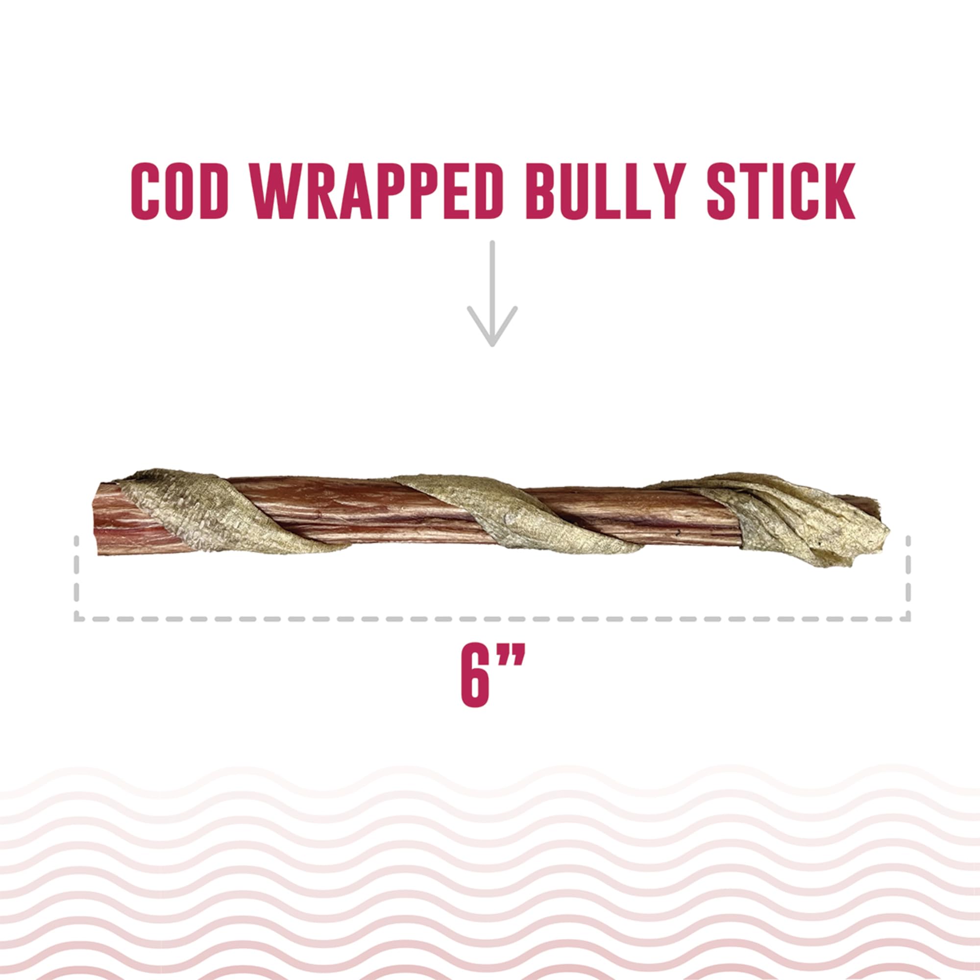 Icelandic+ Fish Sticks - Bully Stick Wrapped in Cod Skin - 5 Pack, 6" - Dog Treats, 2 Ingredient Chews, Hand-Wrapped Wild-Caught Fish, Pet Snacks